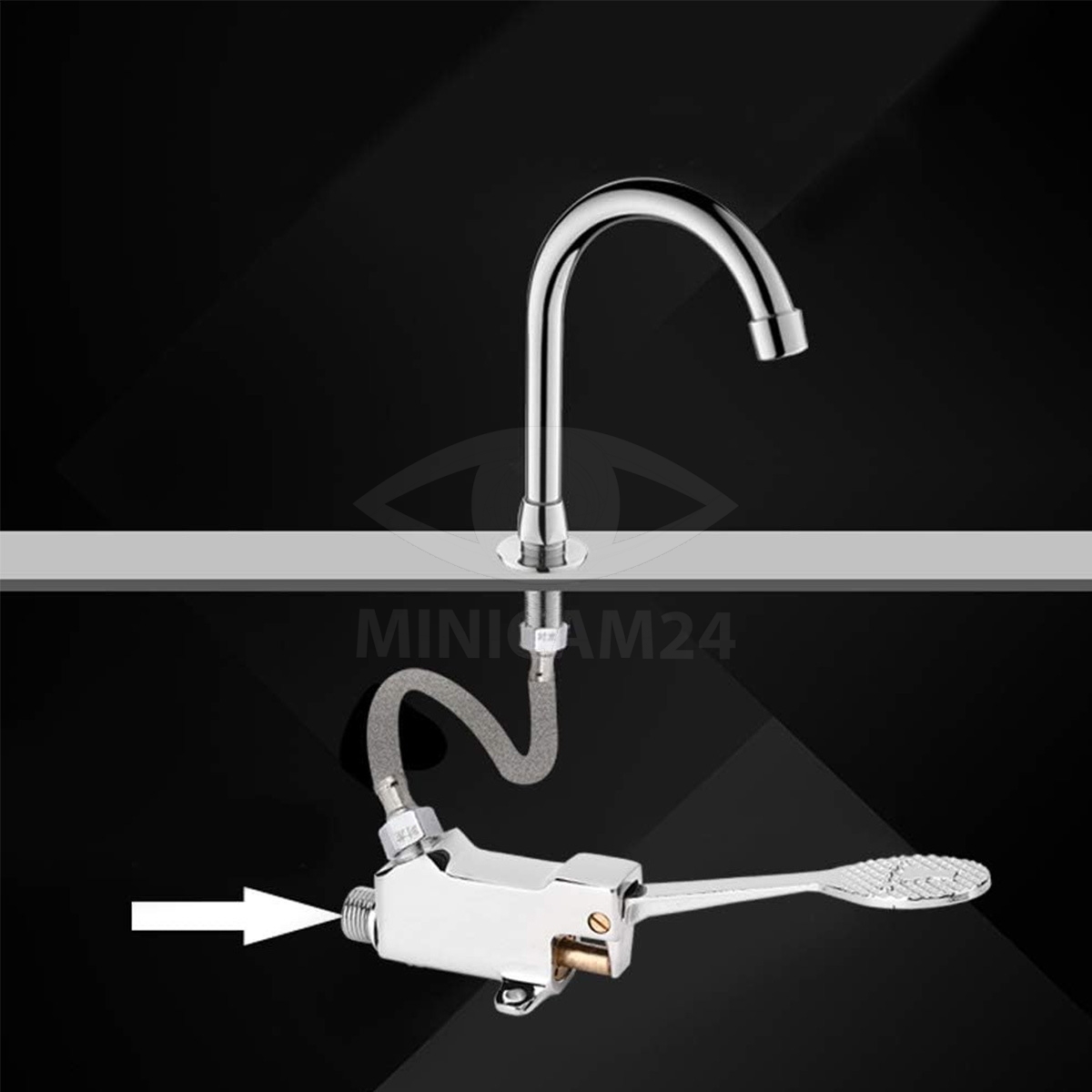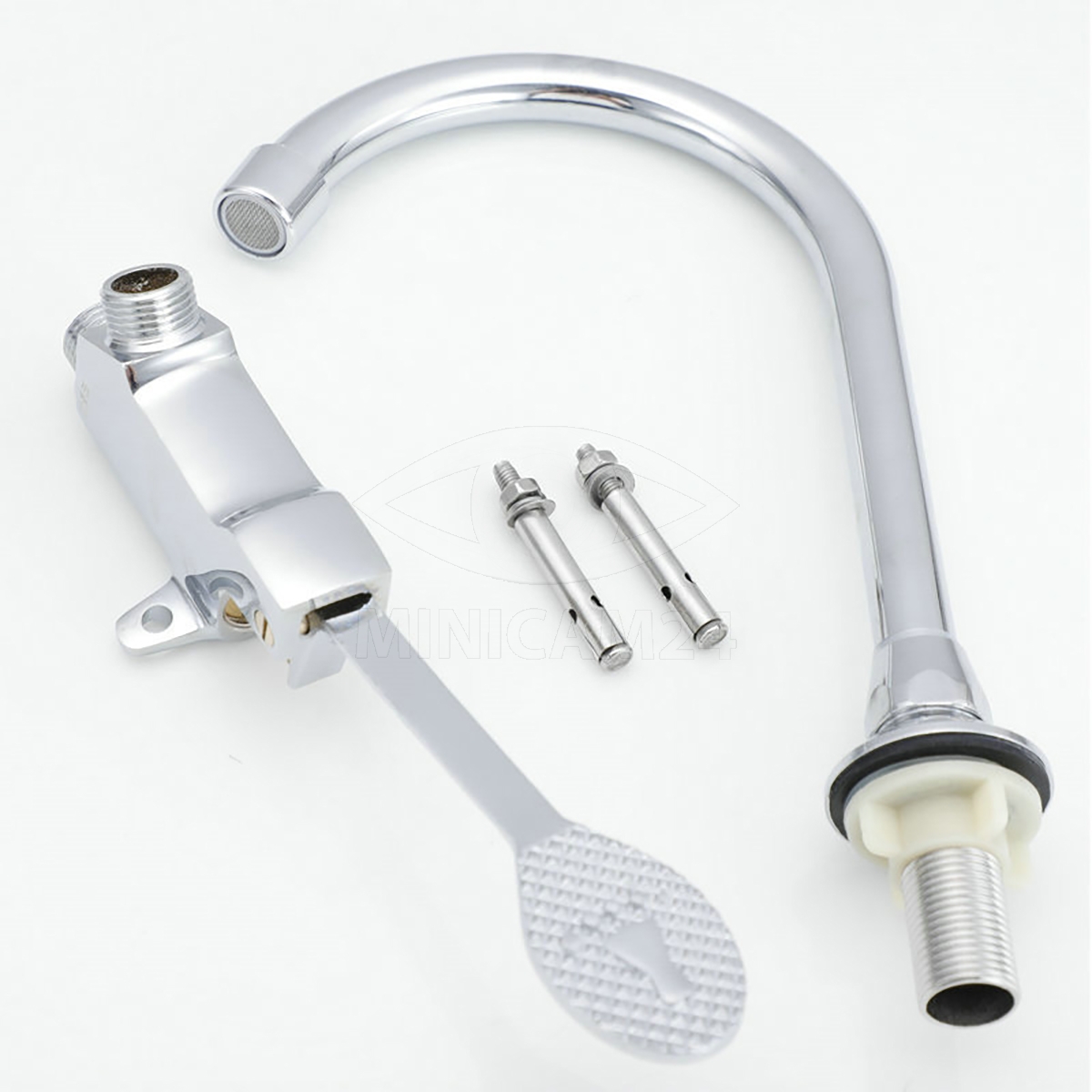 Система ножного привода позволяет легко и гигиенично управлять подачей воды, освобождая руки для выполнения других задач. Время промывки составляет всего 4-8 секунд, что делает использование крана быстрым и эффективным.
